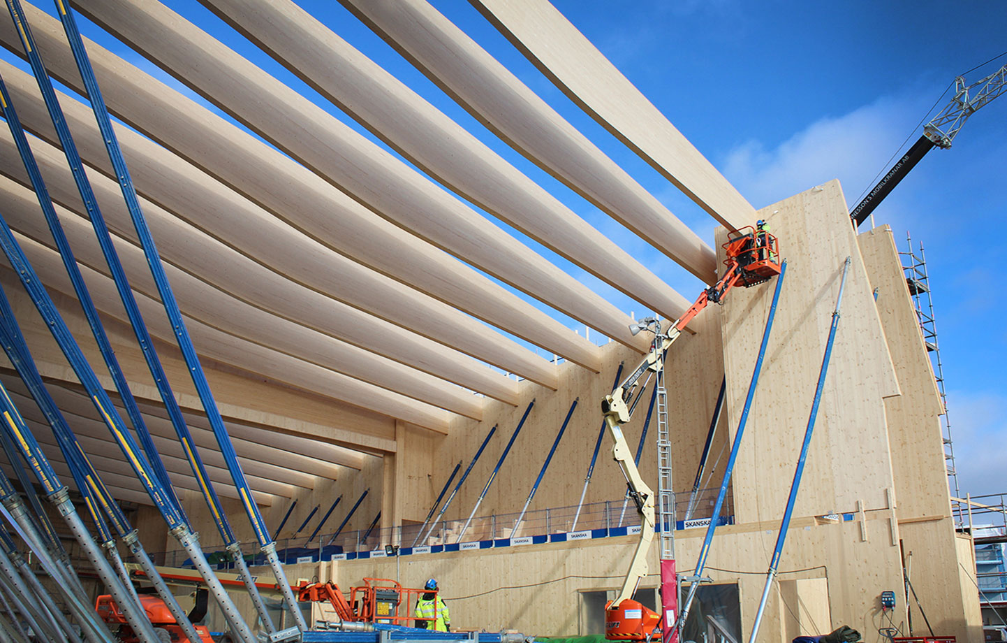 建设木制建筑中暂时搭建的屋顶,Sundbyberg.