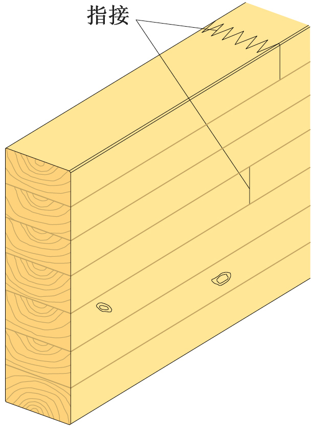 一块胶合木构件由许多层板组成,各层板的缺陷脆弱点聚集在同一位置的可能性是很小的。每块层板也要经过强度分级。在组合胶合木中,外部层压区受到的负载最大,因此由强度大的层板组成。