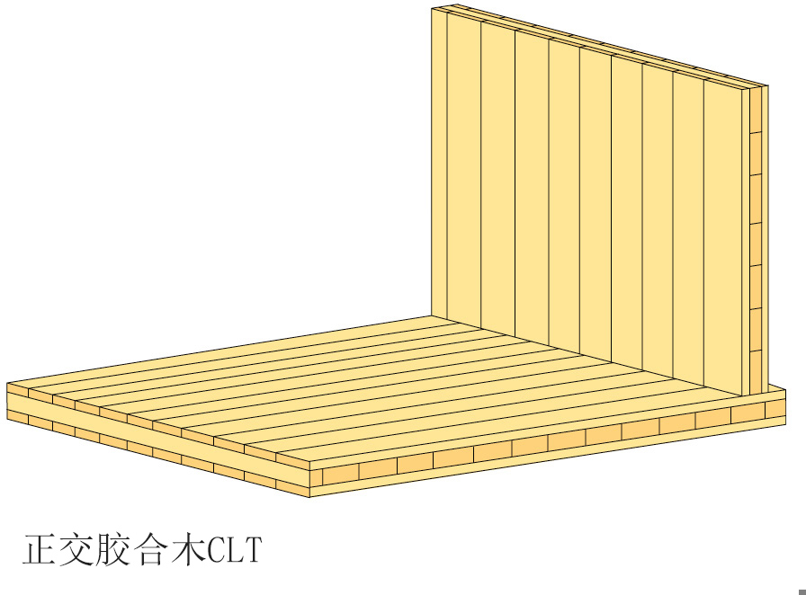 正交胶合木是一种建筑用大型胶合板,由至少三层单板胶合而成,单板为强度分级的芯板或边板,最常见树种的是赤松和云杉。胶合时,相邻层板方向互相垂直。正交胶合木产品主要根据欧洲共同标准生产,并且符合生产生在欧洲技术认可(ETA*)申报的产品标准。