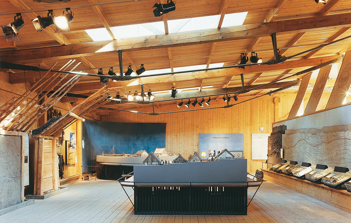 这座博物馆带有一丝假期别墅的气息,自然、舒适,位于马拉伦湖边的芦苇滩中。所有藏品存放在一个谷仓式的门厅内,突出的屋檐可以成为游客野餐的理想地点。建筑的基本组件为木立柱和木板,强调了木材结构的轻快和雅致。除了展览的分隔墙,宽敞、豪放的屋顶结构将展厅的整个空间拢合在一起。高高的采光天窗在屋顶中间,带来一种日式简约,强调了博物馆建筑隐藏在普通外墙中的精美。