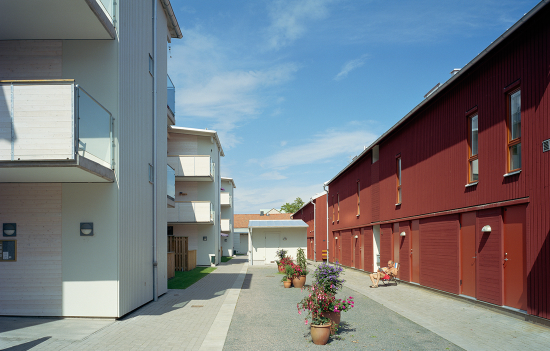 在林雪平的中心地区伫立着这些法鲁红色的小屋。上一层为公寓,下层为车库,给人一种个性和新潮的印象,同时给城市带来一些古香古色的感觉。参考传统的牧场建筑,这些木屋“分工明确”,底层和居住的上层布局完全不同,起到不同的作用。这些住宅巧妙地使用有限的建筑资源,将各种元素巧妙组合,解放出更多空间。