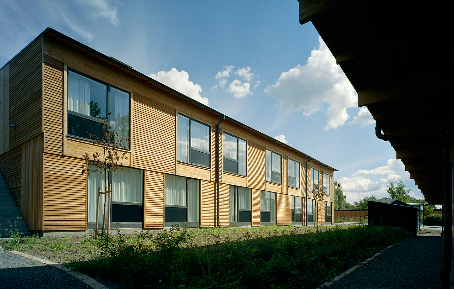 这两个学生公寓街区都是使用预制单元和铁质框架快速建成,外部使用雅致精细的木板覆盖。美丽、有韵律的落叶松木制外墙展现出了国际性的设计。温暖红色、圆润的阳台给人一种感同身受的亲切感。这些公寓同时也起到城市的欢迎代表性建筑的作用,说明了精致的外墙构造也能够使简约的建筑成为建筑瑰宝。