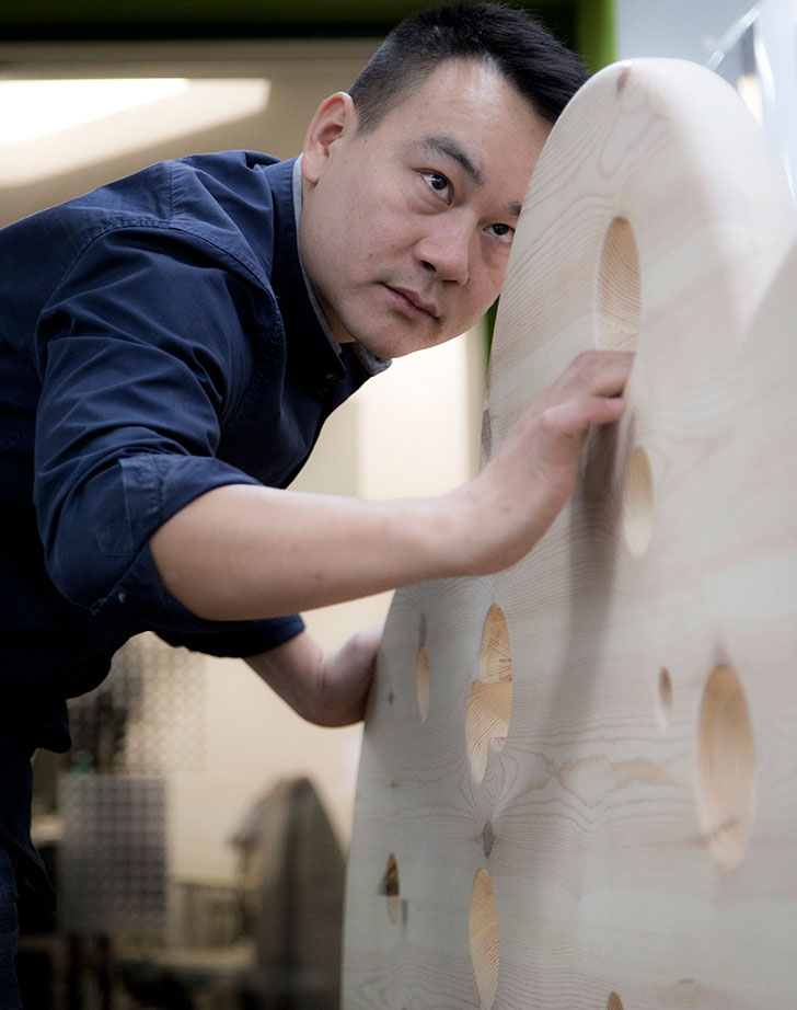 徐先生认为,瑞典赤松触感温和, 给人亲切感,非常适合一些使用 频繁的家具或儿童家具。瑞典赤 松也不容易变形,性能稳定,容易 加工,所以在设计上可以运用到一 些大胆的造型。他意识到常见的婴