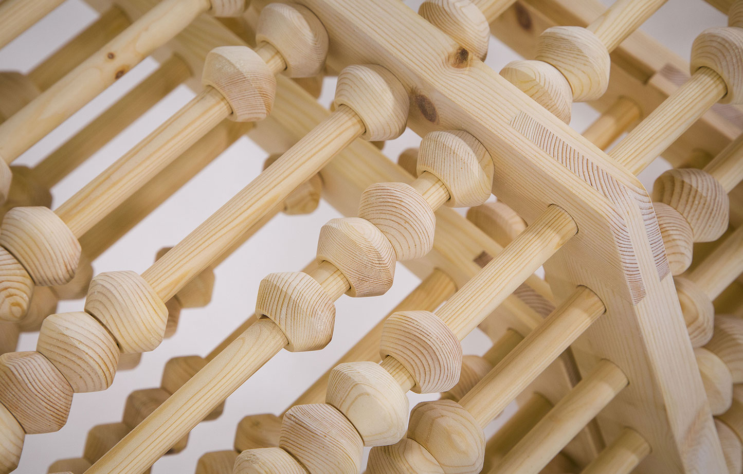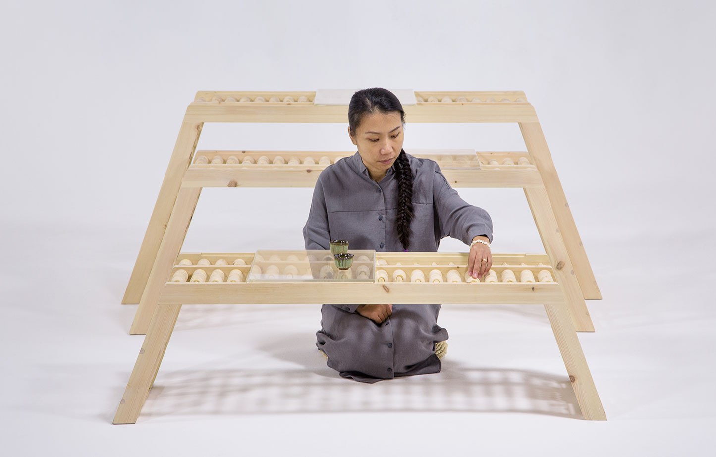 算盘是中国传统的少儿启 蒙计算工具。朱小杰以中 国传统的算盘为原点, 设计了一组结构相同、尺 寸不同的家具。这组作品 既可以作为儿童启蒙的算 盘,又能由小到大作为板 凳、茶几、桌子使用;既 有家具的功能,又有教育 的智慧。朱小杰希望以此 鼓励孩子们学会用手去 思考。